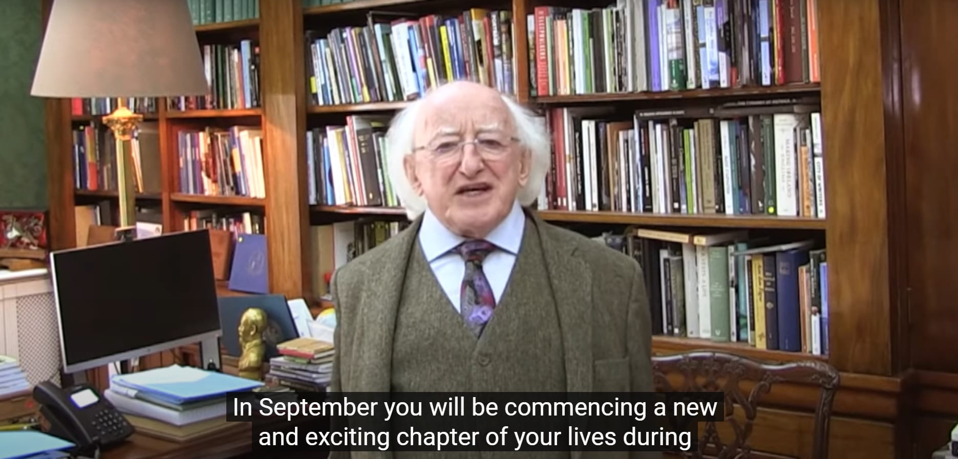 We know that it has been an adjustment for everyone not being able to come into school and see teachers and friends, and this is particularly difficult for our boys in sixth class, who will be moving on to their new schools in September. The President of Ireland Mr. Michael D. Higgins has recorded a video especially for sixth class students all over the country and as always, gives some great advice and warm words.
