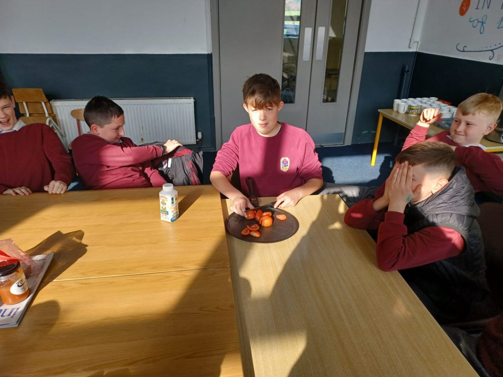 Last Friday, the boys in 6th class started a healthy eating cooking course. They went down to the breakfast club and learned how to make omlettes and french toast. They had lots of fun, especially at tasting time. Everyone tried it the food however, the French toast was the clear favourite!